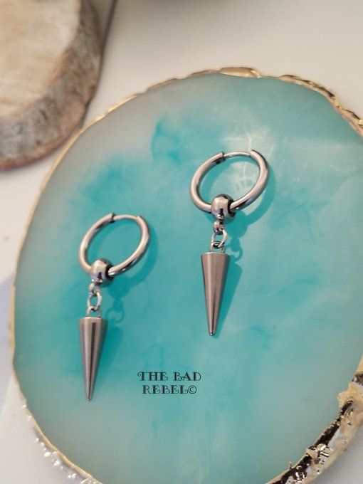 Original Créoles argente Homme Femme !! SILVER SPIKE!! Créoles en Acier Inoxydable T.1.5cm x 3.6cm The Bad Rebel collection spike cone !!