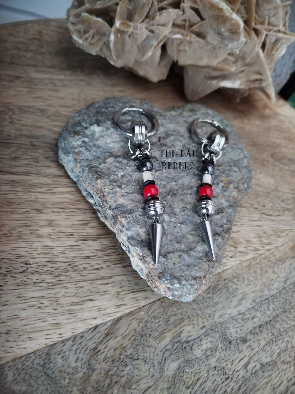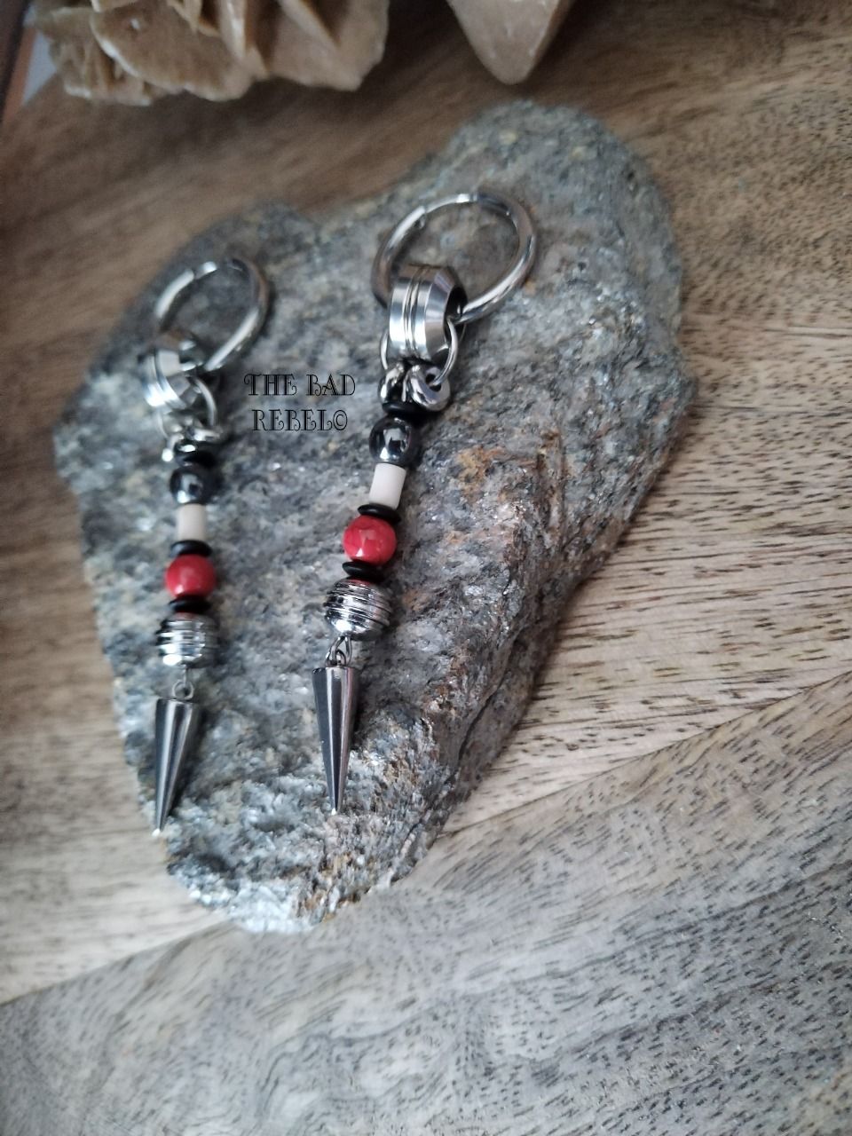 Créoles Boucles D'oreilles Créoles en Acier inoxydable Style Industrial avec perles Acier Inoxydable Groove Entretoise Perles Colonne, perles Hematite rond perles howlite rond, spike cones acier.