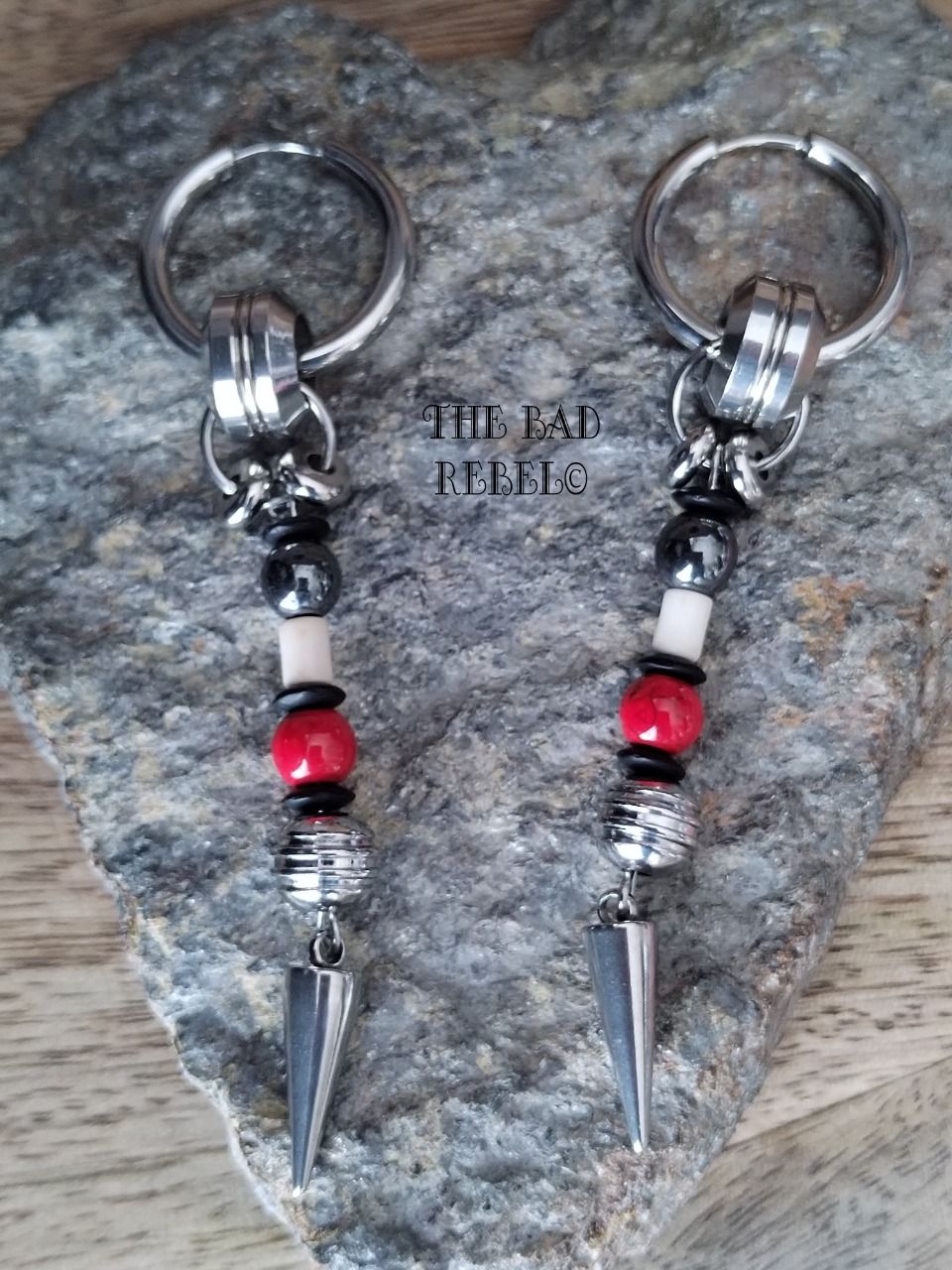 Original Créoles Boucles D'oreilles Homme Femme !! INDUSTRIAL SPIKE!! Créoles en Acier Inoxydable T.2.3cm x 7cm The Bad Rebel Collection Industrial